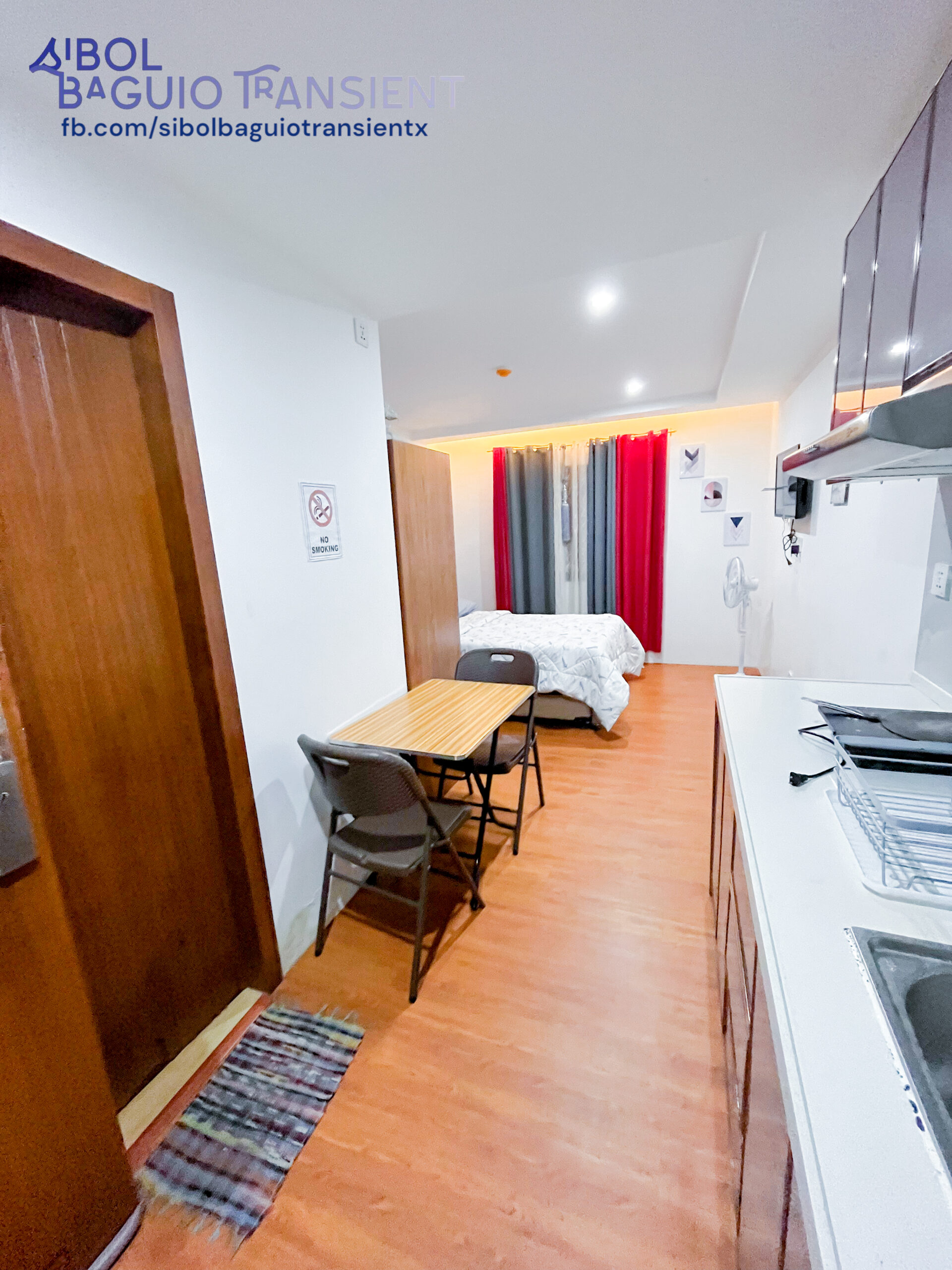 - Amenities: 24-hour security, 360-degree View Roof Deck, CCTV surveillance, Clean Linens & Pillows, Dining Area, Electric Fan, FREE WiFi, Fully-furnished, Generator Back-up, Hot & Cold Shower, Kitchen, Kitchen Appliances, No Curfew, On-site Parking, Private Bathroom, Refrigerator, Studio-Type, TV with Netflix