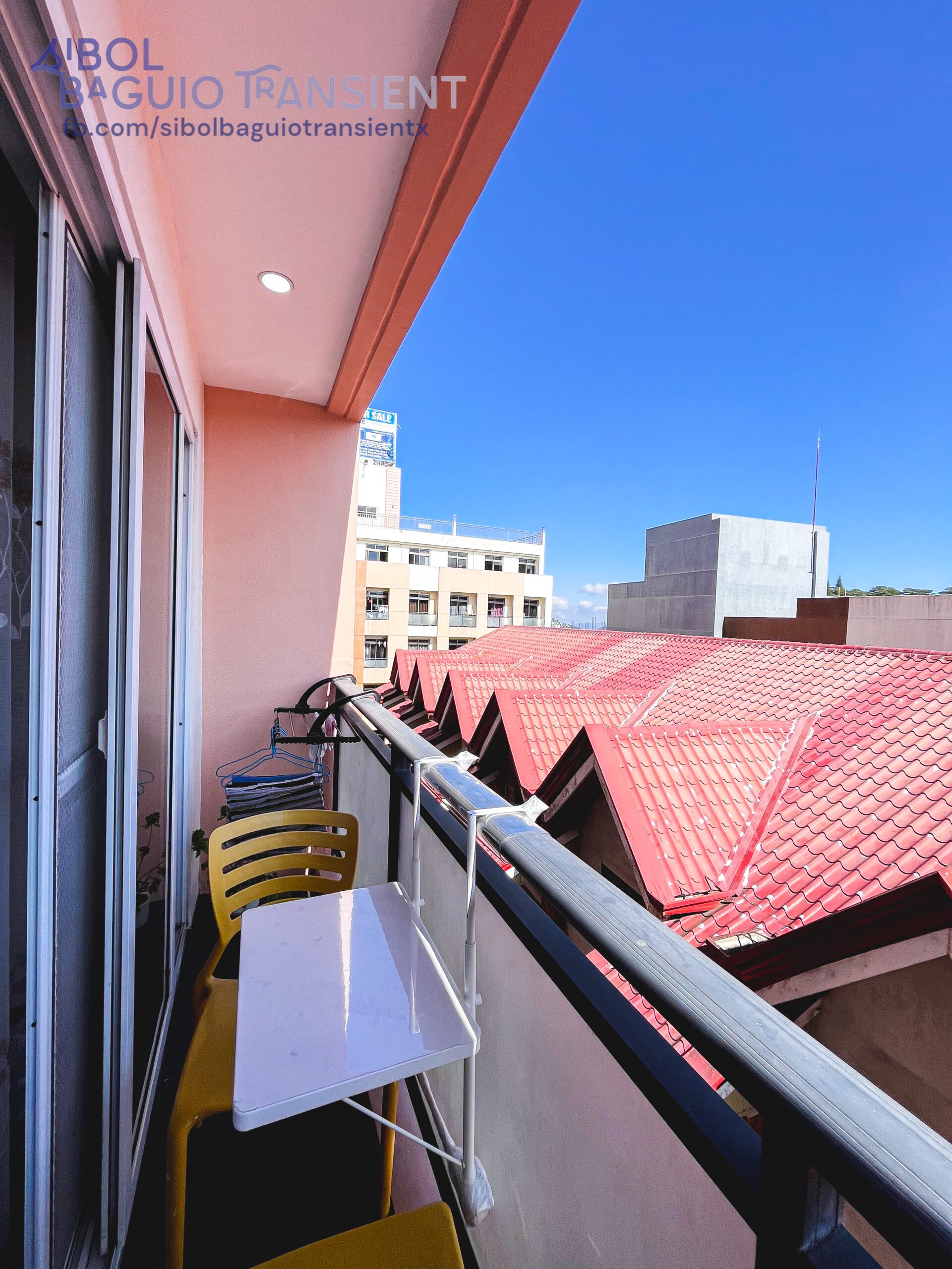- Amenities: 24-hour security, 360-degree View Roof Deck, Balcony, CCTV surveillance, Clean Linens & Pillows, Clothing Storage, Dining Area, Electric Fan, FREE WiFi, Fully-furnished, Generator Back-up, Hangers, Hot & Cold Shower, Kitchen, Kitchen Appliances, Microwave, No Curfew, On-site Parking, Private Bathroom, Refrigerator, Sofa, Sofa/Couch, Studio-Type, TV with Netflix, Wine Glass, Workspace